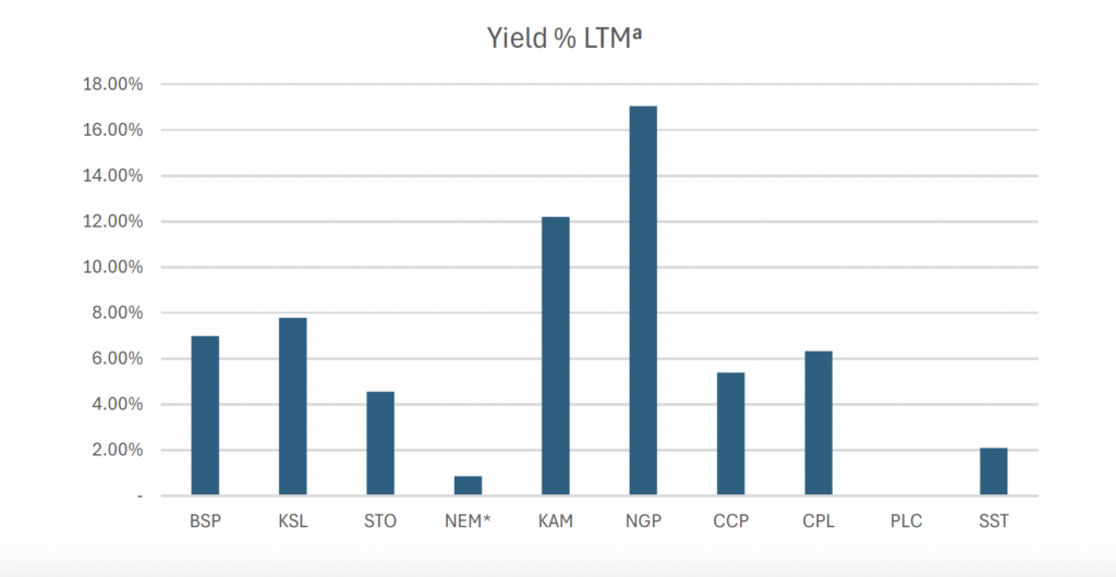 a LTM = Last Twelve Months. We have calculated yields based on most recently declared