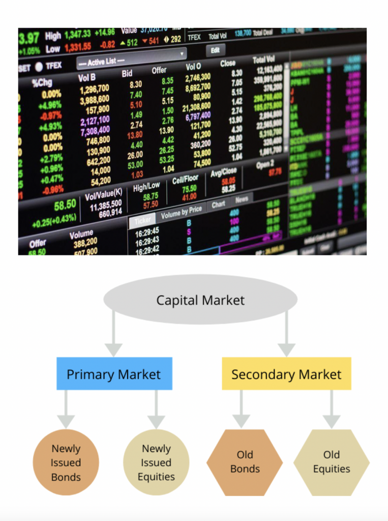 • Capital markets are the exchange system platform that transfers capital from investors who want to employ their excess capital to businesses that require the capital to finance various projects or investments. Capital markets primarily feature two types of securities: equity securities and debt securities. Both are forms of investments that provide investors with different returns and risks and provide users with capital with different obligations.