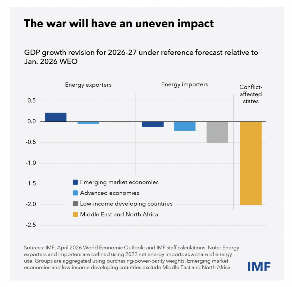 Countries will feel the impact differently. As in past commodity-price surges, importers are highly exposed. Low-income and developing economies—especially those with vulnerabilities and limited buffers—are likely to be hit hardest. Gulf energy exporters will face economic fallout from damaged infrastructure, production disruptions, export constraints, and weaker tourism and business activity. Remittances will fall in countries that supply migrant workers to the region.